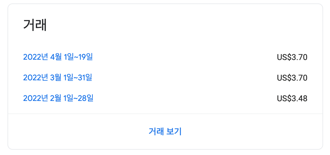 2월부터 4월까지 이사와 이직으로 블로그 업로드를 많이 못했더니 구글 애드센스 수익에 별 차이가 없었다. 하지만 3.48에서 3.70으로 0.22달러 정도의 수익을 벌어들였다. 아무것도 안하고 2달 반 동안 300원 정도를 번 것이다.