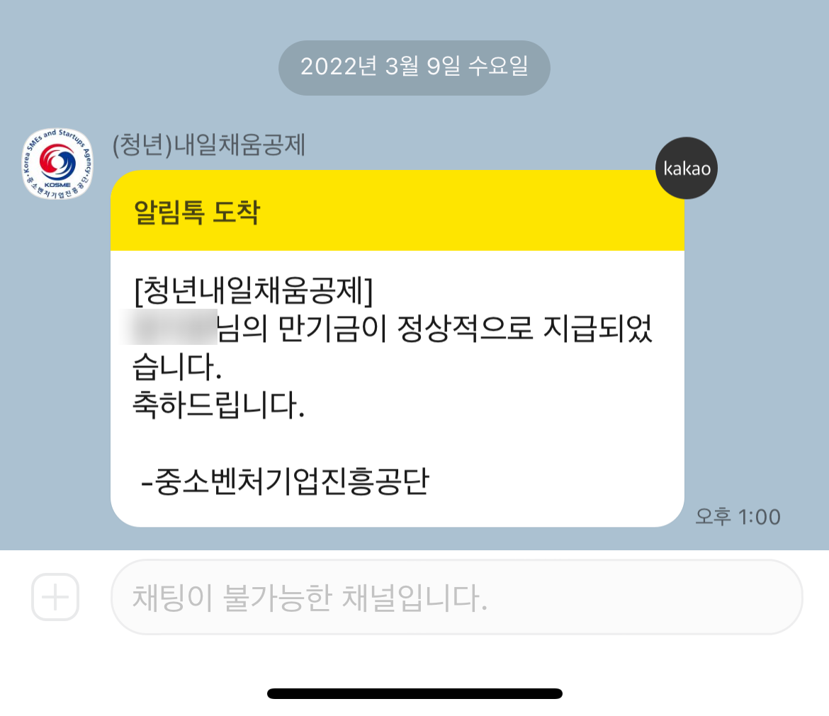 내일채움공제는 만기일 이후 2개월 후에 들어오기 때문에 조금만 인내해야한다.