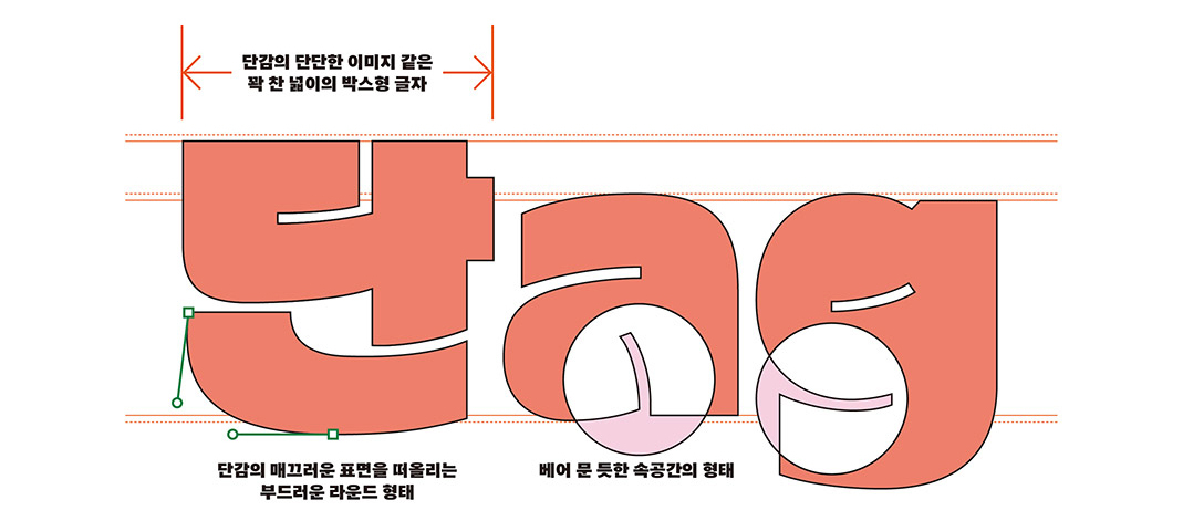 모서리 부분이 동그랗고 폰트의 그리드를 꽉 채운 깔끔한 서체에요.